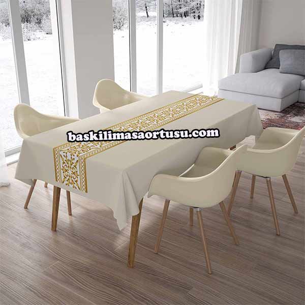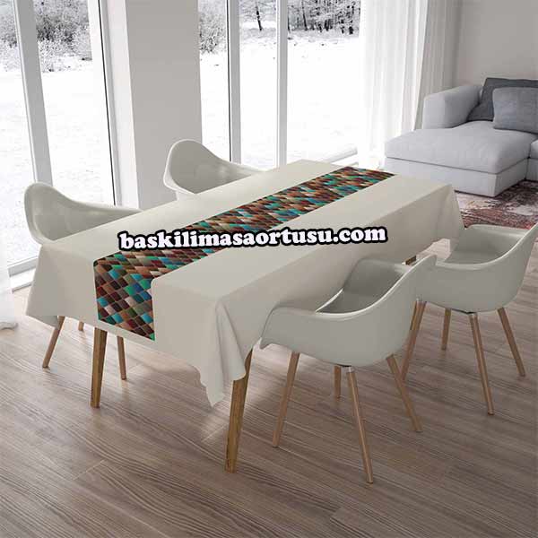 Baskılı Runner,  Masa örtüsü, peçete ve amerikan servisi.